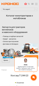 | AI-анализ | --- This online resource is an e-commerce website selling agricultural machinery and spare parts in Belarus, operated by KronosBY. The website offers a wide range of products including tractors, mini-tractors, and motorblocks, as well as attachments and engines. Customers can benefit from installment plans and warranties. The website also features customer testimonials and independent product reviews from av.by. Users can find assistance in selecting spare parts and contact the company via multiple phone numbers. The catalog includes various categories such as tractors, mini-tractors, loaders, cultivators, and attachments for them. The website is available at kronos5.by. |