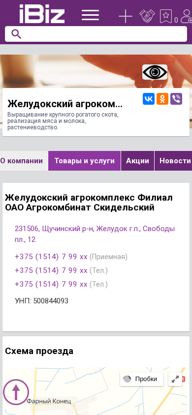 Название / Заголовок | Желудокский агрокомплекс Филиал ОАО Агрокомбинат Скидельский - Выращивание крупного рогатого скота, реализация мяса и молока, растениеводство.. 231506, , Желудок г.п., Свободы пл., 12 |
