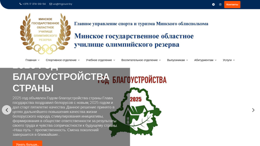 SEO-описаниеИскренне рады приветствовать вас на сайте УО «Минское государственное областное училище олимпийского резерва». Наше училище – уникальное учебное заведение, объединяющее в себе государственное образовательное учреждение и центр подготовки спортивного резерва в национальные команды Республики Беларусь. Работать и учиться в таком заведении престижно.