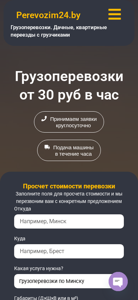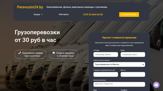 | SEO-описание | Надежные грузоперевозки по Минску от Perevozim24 — быстро, недорого и с гарантией сохранности. Перевозка мебели, техники, офисов, квартир. |