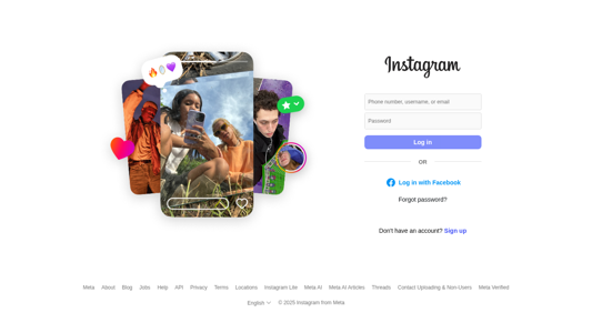 | AI-анализ | language: en type: website The website is Instagram, a social media platform for sharing visual content and interacting with others. Users can create or log into their accounts, using a phone number, username, or email. They can also log in using their Facebook account. Forgotten passwords can be retrieved, and new accounts can be created. The website offers various features, including the ability to upload and view photos and videos, add captions and filters, and follow and interact with other users. It also has a Help Center for assistance and an API for developers. The website is available in multiple languages and is operated by Meta. |