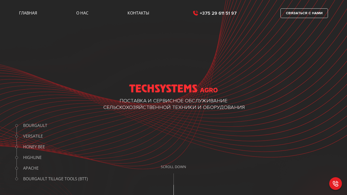 | AI-анализ | --- The web project Techsystems is a company based in Belarus offering sales and servicing of foreign agricultural equipment throughout the country and abroad. The website provides information on various brands such as Bourgault, Versatile, Honey bee, Highline, Apache, and BTT, with separate pages dedicated to their respective product lines including tractors, harvesters, and livestock equipment. The site also offers information on Apache sprayers by Equipment technologies and Bourgault tillage tools. The company emphasizes individual client approach, competitive leasing programs, and a contact form for inquiries. The website is developed and promoted in Astana. |