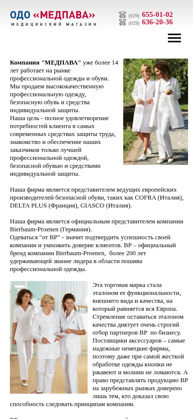 SEO-описание | Компания "МЕДПАВА" уже более 14 лет работает на рынке профессиональной одежды и обуви. Мы продаем высококачественную профессиональную одежду, безопасную обувь и средства индивидуальной защиты. |