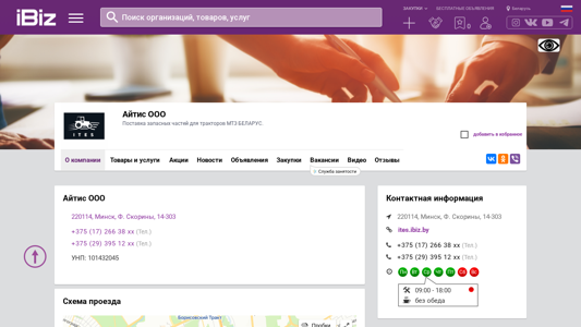 Название / Заголовок | Айтис ООО - Поставка запасных частей для тракторов МТЗ БЕЛАРУС.. 220114, Минск, , Ф. Скорины, 14-303 |