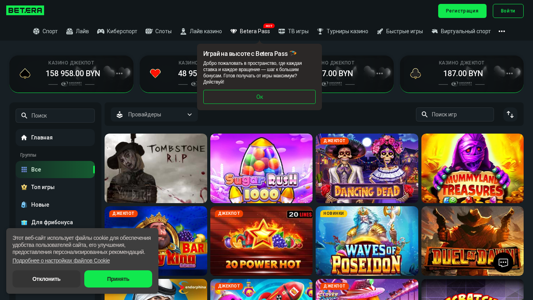 SEO-описание | Играй в слоты для бонуса в онлайн казино на деньги в Беларуси Betera ⭐️ Регистрируйся и получай 100 фриспинов. Играйте в игровые автоматы и крутите слоты на деньги или бесплатно! |