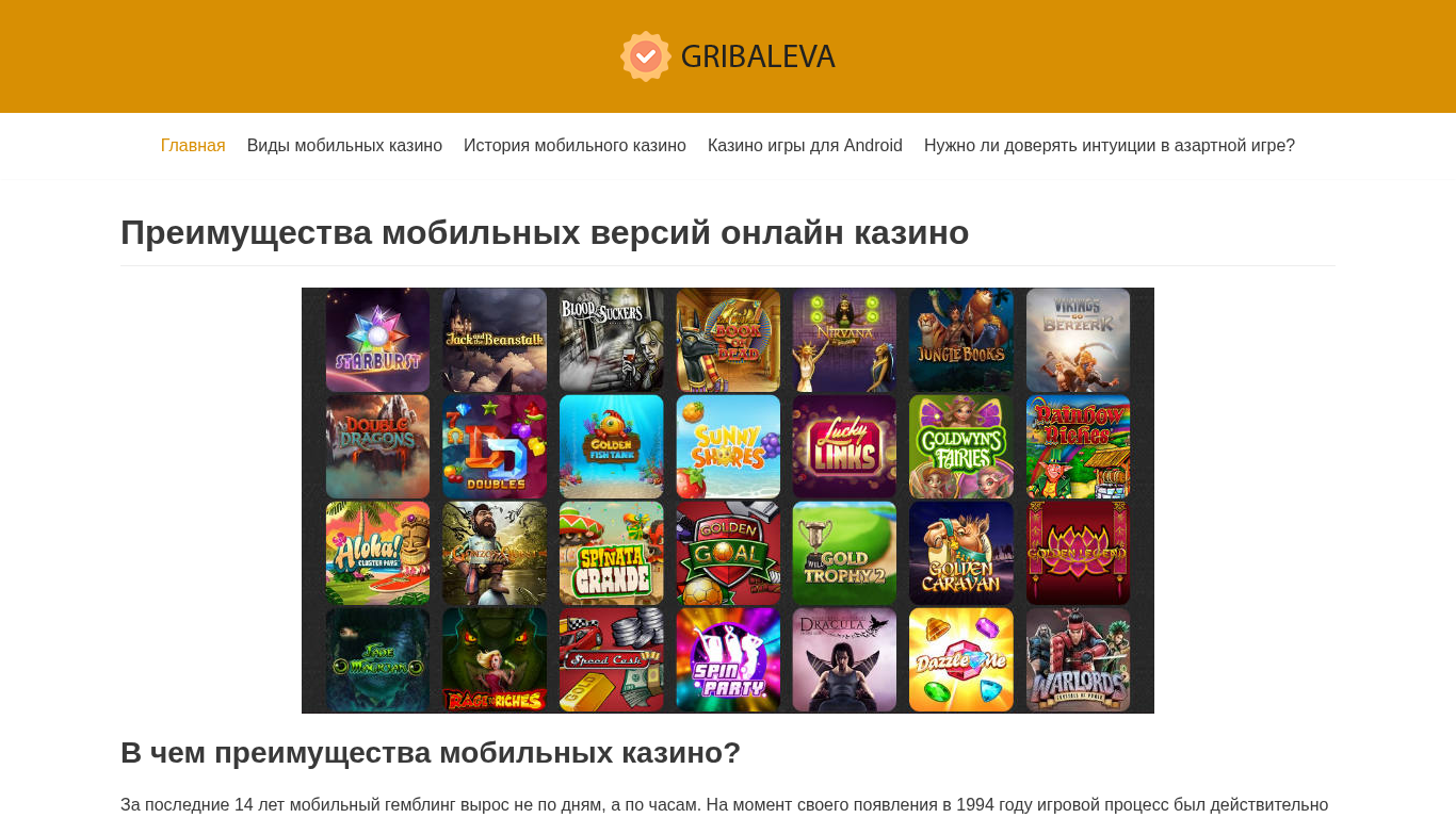 Название / Заголовок | Преимущества мобильных версий онлайн казино - gribaleva.by |