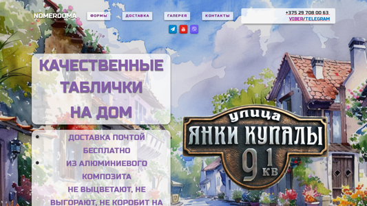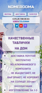 | AI-анализ | The web project "Tablicki na dom" (Tables on the house) offers various types of address plates for sale, including those for private homes. Customers can choose from different sizes, materials (aluminum composite), colors (beige, brown, white, blue, red, green, burgundy, and other), and designs. The plates are delivered free of charge by mail, and they do not fade, corrode, or crack under the sun due to their high-quality materials. The website provides customers with the opportunity to create a custom design, and various sizes and models are available, such as "Aveny," "Venecia," "Shchit," "May," and "Ivanovo." The website also offers a chair called "Amerika" that can be made to order. The domain name is "nomerdoma.by." |