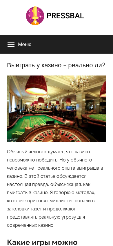 | Название / Заголовок | Выиграть у казино – реально ли? / pressbal.by |