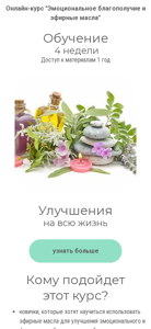 | AI-анализ | This website is an online course platform named "AromaLife.by" offering a four-week emotional wellbeing and essential oils education program. Access to course materials is granted for one year, with the potential for continuous improvement throughout one's life. This course caters to beginners seeking to learn about essential oils for emotional and physical wellbeing, professionals in coaching, psychology, or training, individuals looking to understand themselves better and maintain emotional balance without a psychologist, and oil enthusiasts concerned for the wellbeing of their loved ones. The program includes the creation of beneficial habits and rituals for everyday use. It is not a theoretical study, but a practical one, with participants working with ten essential oils. The course consists of four modules: Module 1 focuses on essential oils as tools for self-discovery and emotional intelligence. Module 2 explores the energy-boosting, clarifying, and assertive |