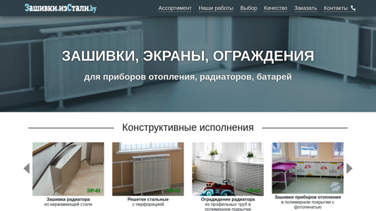 SEO-описание | Организация занимается проектированием, изготовлением и монтажом экранов, зашивок радиаторов отопления в Минске. Работаем по всей Беларуси. Металлические ограждения для приборов отопления в полимерном покрытии. Зашивки радиаторов из негорючих материалов. |