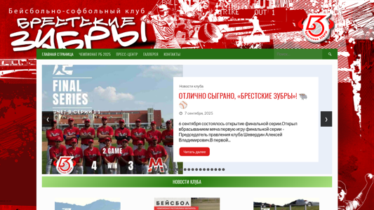 | AI-анализ | --- The website "Брестские Зубры" (Brest Zubrs) is dedicated to the sports club of the same name based in Belarus. The title of the website reflects the name of the club and the city it represents, "Брестские Зубры" (Brest Zubrs). The description of the website mentions the club's news, championships, and various tours. Keywords associated with the website include "Брестские" (Brest Zubrs), "чемпионат" (championship), "РБ" (Republic of Belarus), and "бейсболу" (baseball). The top words on the website are "новости" (news), "клуба" (club), "читать" (read), "далее" (further), "августа" (Aug |