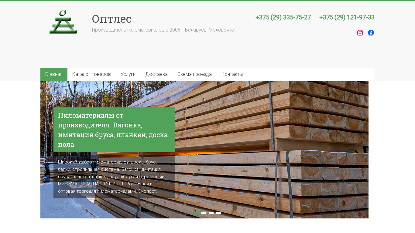 | SEO-описание | Оптлес - производитель пиломатериалов. Розница и опт. Доска, брус, вагонка, планкен, имитация бруса, доска пола. Услуги по техсушке. Экспорт пиломатериалов |
