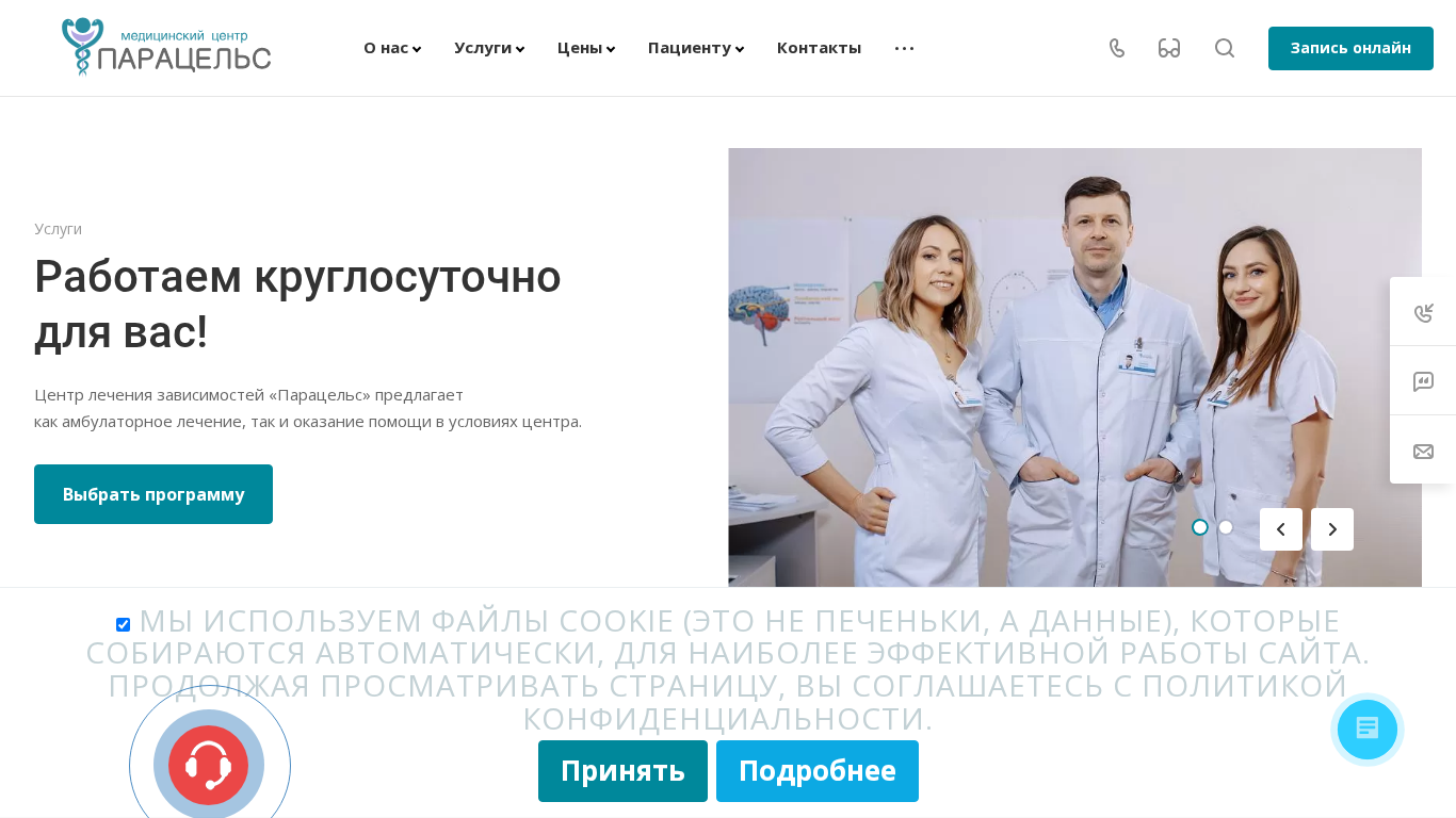 SEO-описаниеМедицинский центр Парацельс оказывает услуги диагностики и лечения алкоголизма и наркомании. Анонимное лечение алкогольной и наркотических зависимостей в Минске. Звоните: ☎ +375 (17) 201-40-10