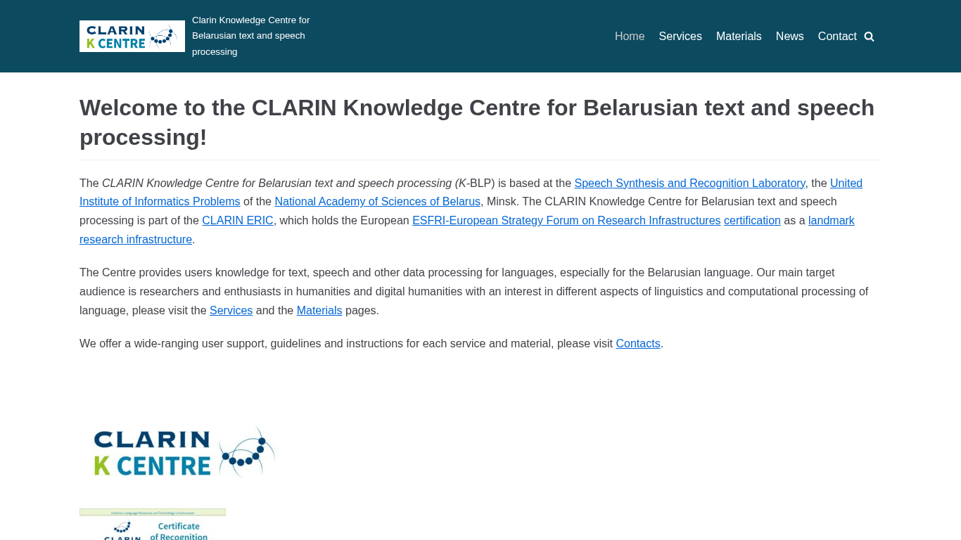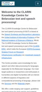 Название / Заголовок | Clarin Knowledge Centre for Belarusian text and speech processing – Clarin Knowledge Centre for Belarusian text and speech processing |