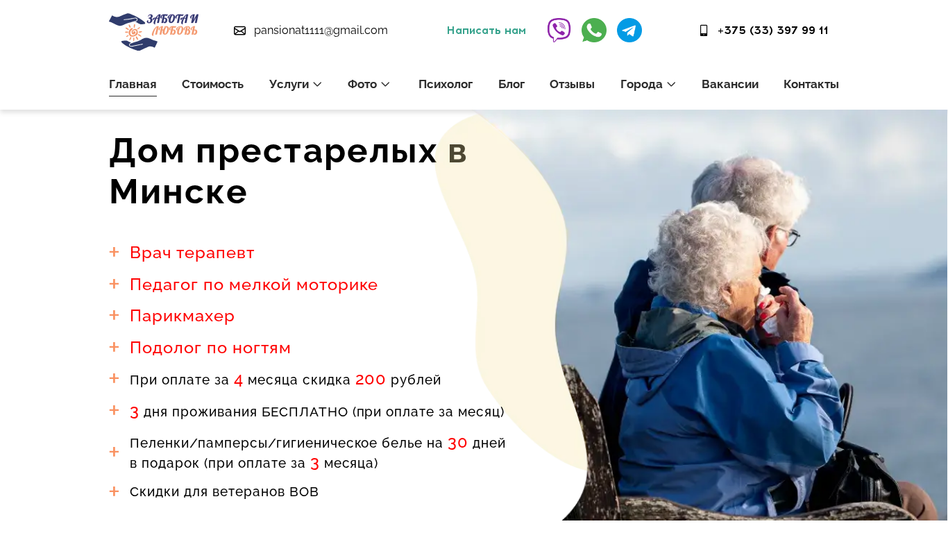Название / Заголовок | Дом престарелых в Минске "Забота и любовь" - Пансионат для пожилых людей |