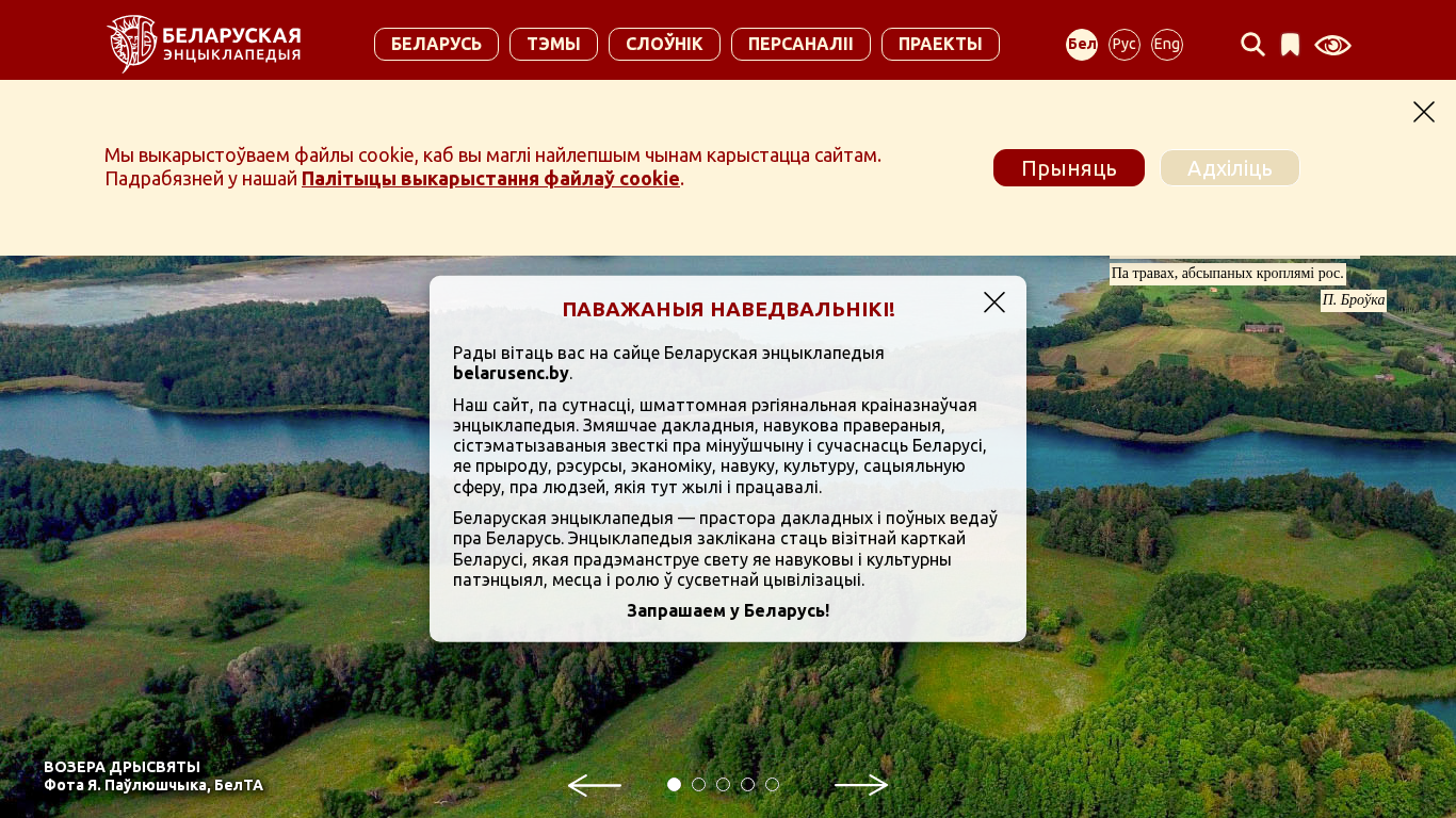 SEO-описание | Электронная энцыклапедыя змяшчае коратка і даступна выкладзеную інфармацыю пра мінулае і сучаснасць Беларусі, яе прыроду, рэсурсы, эканоміку, навуку, культуру і сацыяльную сферу, пра людзей. У падрыхтоўцы энцыклапедычных матэрыялаў задзейнічаны высокі патэнцыял Айчыннай акадэмічнай навукі, навуковая грамадскасць краіны. |