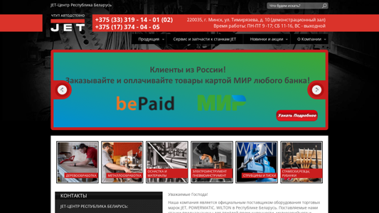 Название / ЗаголовокОфициальный сайт JET-Центр Республика Беларусь. Купить Деревообрабатывающие и Металлообрабатывающие оборудование, станки, станки с ЧПУ, электроинструмент Triton, тиски и струбцины Wilton
