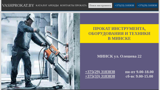 SEO-описаниеБольшой выбор инструмента и оборудования на сайте vashprokat.by. Аренда по адекватным ценам, гарантия рабочего инструмента, прокат Советкий район