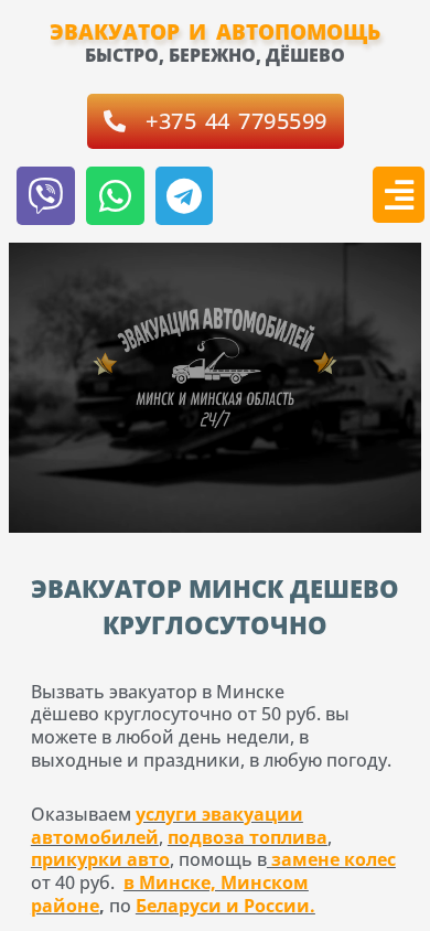 Название / Заголовок | Эвакуатор Минск дёшево! Автопомощь от 30 руб круглосуточно |