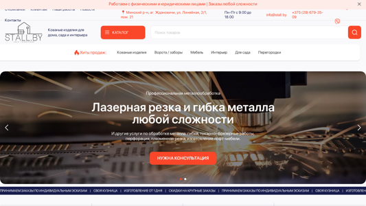 Адресг. Ждановичи, ул. Линейная 2, корп.1, пом.21. Режим работы: Пн–Пт: 09:00–18:00, Сб–Вс: выходной. E-mail: info@stall.by. Сайт