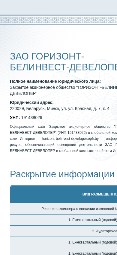 Название / Заголовок | ГОРИЗОНТ-БЕЛИНВЕСТ-ДЕВЕЛОПЕР ЗАО |