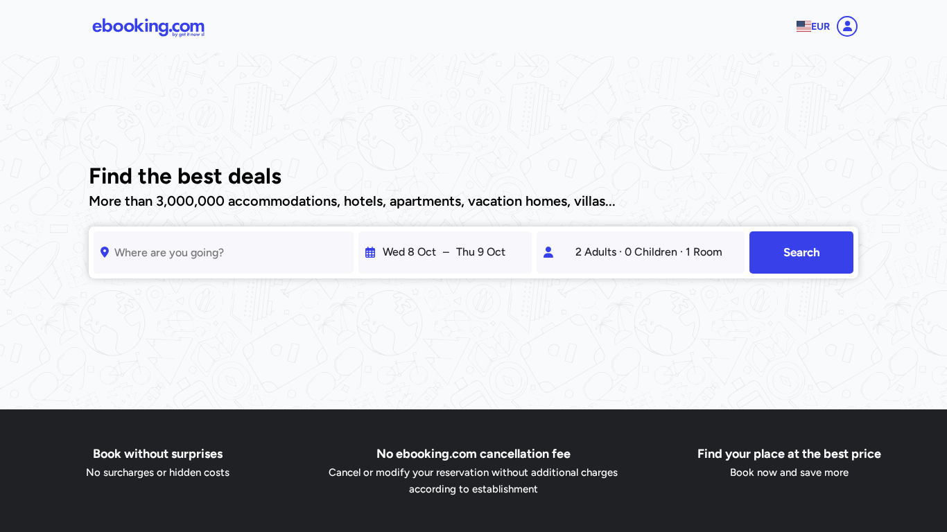 SEO-описание | ebooking.com, Hotel deals in all destinations. Find & book hotels saving up to 75%. hotel booking without fees. |
