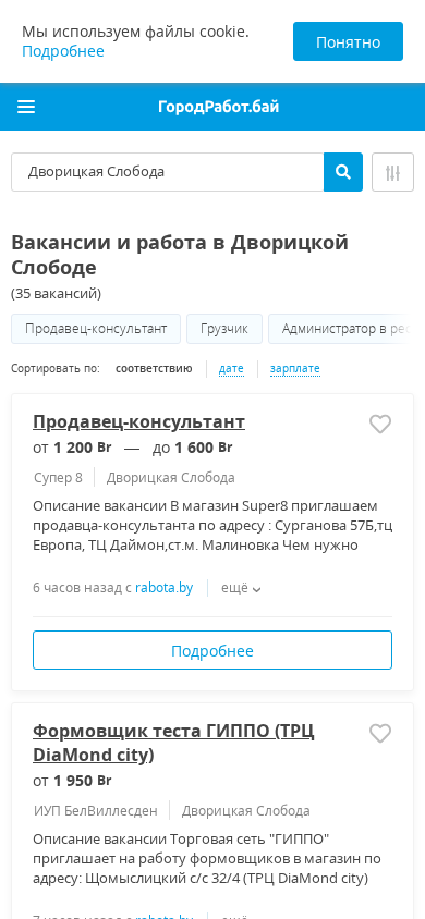 SEO-описание | Ищете работу в Дворицкой Слободе? На нашем сайте Вы найдете более 35 свежих вакансий от прямых работодателей. Быстрый и удобный поиск вакансий с ГородРабот.бай |