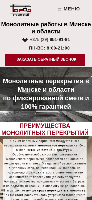 Название / Заголовок | Монолитные перекрытия в Минске и области |