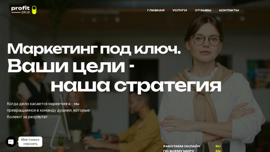 language: ru --- The web project "Digital Agency - profitplus.by" is a marketing agency providing services in various marketing fields, including marketing strategies, website development, contextual and targeted advertising, and social media management. The agency offers solutions for businesses in different industries, such as industrial design for Caramba, branding, Shopify redesign for a Nova Scotia winery, and others. They claim to work online worldwide and care deeply about achieving successful results for their clients. Their services include market analysis, identifying target audiences, and building custom marketing strategies to maximize profits. They also offer website development, creating modern and functional sites that outshine competitors. In addition, they provide contextual advertising, setting up campaigns in search engines to attract the desired audience with maximum return on investment. They offer targeted advertising in social media, ensuring that ads are only viewed by those who are genuinely interested. Their social media management services aim to
