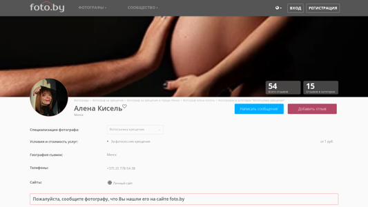 | AI-анализ | The portal is a photography website by Alena Kisel, based in Minsk, Belarus. The site focuses on photography services for various categories, including 'Photo Shooting for Baptisms'. Alena works as a child and family photographer, as well as a photographer for baptisms in Minsk. The website provides information on the photographer's specializations, pricing, and contact details. The main page displays a catalog of photographers, but with the switch to a different setting, the community of photographers becomes the featured content. The site offers a blog, a section for announcements, and a contact form to write messages or leave reviews. The photographer's portfolio includes various genres like children, families, and baptisms. The site is available in both Russian and Belarusian languages. The domain for the website is alena-kisel.foto.by. |