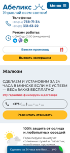| AI-анализ | --- The web project minsk.abelix.by is an e-commerce platform selling blinds and roller shades in Minsk, Belarus. The site offers custom orders at low prices with a discount of up to 55%. The products, including vertical and horizontal blinds, roller shades, and mosquito nets, come with a three-year warranty and free delivery and installation. Customers can contact the company through two provided phone numbers during business hours. The site features a catalog with various types and colors of blinds and shades, with prices starting from 30 rubles for plastic and 40 rubles for aluminum ones. The site also mentions a 15-year history on the market and the availability of components and ready-made products. |