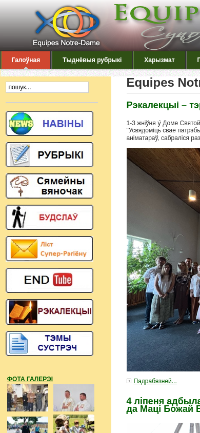 SEO-описание | Вітаем Вас на старонцы Equipes Notre-Dame – Суполкі Маці Божай! З’яўляемся беларускім сектарам міжнароднага руху сужанскай духоўнасці Equipes Notre-Dame, галоўная мэта якога – дапамога хрысціянскім сем’ям найбольш поўна перажываць сакрамант шлюбу. |