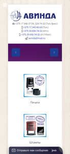 SEO-описание | Компания "Авинда" предлагает срочное изготовление печатей и штампов в Минске. Изготовление от 2 часов. Цены и подробности по телефону ✆ +375 17 292-60-63. |