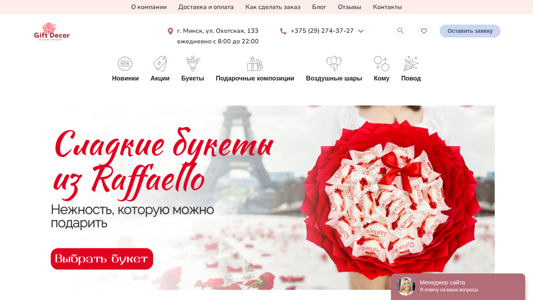 SEO-описание | GiftsDecor — мастерская необычных букетов и подарков. Заказывайте авторские букеты из конфет, игрушек и шаров с доставкой. Дарите эмоции! |