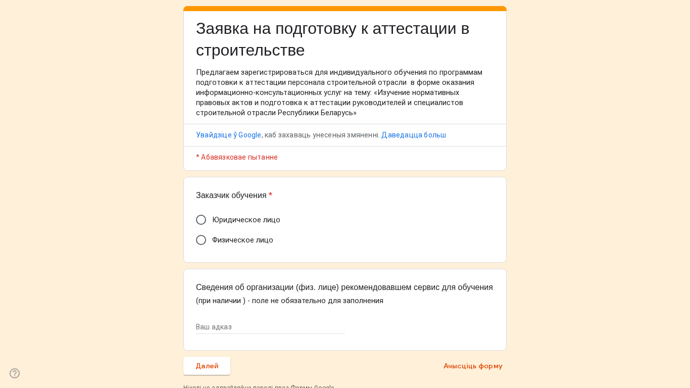 Название / ЗаголовокЗаявка на подготовку к аттестации в строительстве