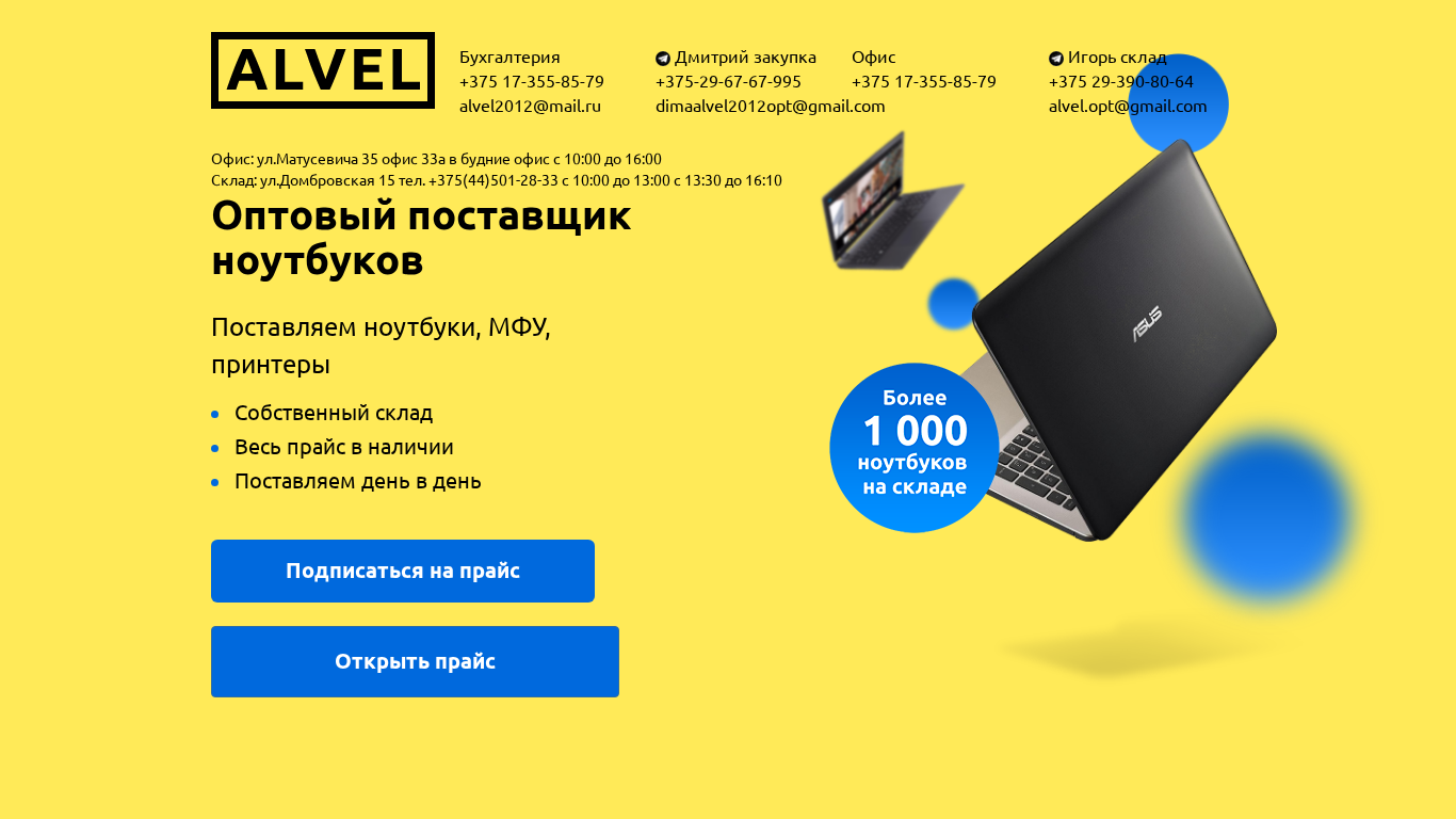 alvel2012@mail.ru, alvel.opt@gmail.com, dimaalvel2012opt@gmail.com | |