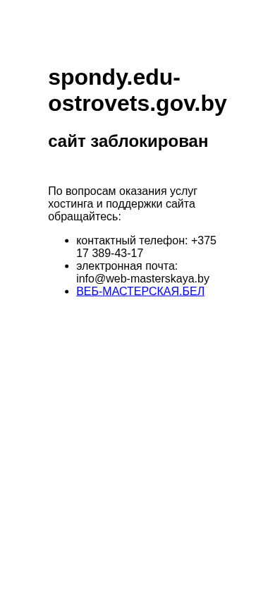 SEO-лексикасайт spondy edu-ostrovets gov заблокирован вопросам оказания услуг хостинга поддержки сайта обращайтесь контактный телефон 375 389-43-17 электронная почта info web-masterskaya