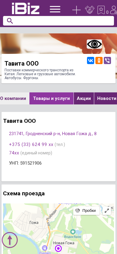 Название / Заголовок | Тавита ООО - Поставки коммерческого транспорта из Китая. Легковые и грузовые автомобили. Автобусы. Фургоны. . 231741, , Новая Гожа д., 8 |