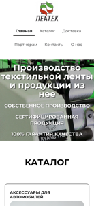 | AI-анализ | The web project "ПЕАТЕК" specializes in the production of textile tapes and products from them. The company produces certified, high-quality textile tapes and items made of them. Their product range includes functional automotive accessories that enhance comfort for drivers and passengers, while adding exclusivity and expanding the capabilities of vehicles. These include seat belts, straps, and ropes. The company also offers big-bags, soft containers with large carrying capacity for storing and transporting bulk goods, equipped with special clamps, straps, and loops for easy loading and unloading. Additionally, the site provides a catalog of fishing accessories and equipment, as well as bags, cases, and oshwings for livestock farming. Delivery is available throughout Belarus, Russia, and the CIS. For wholesale buyers, delivery within Belarus is free. For wholesale buyers in |