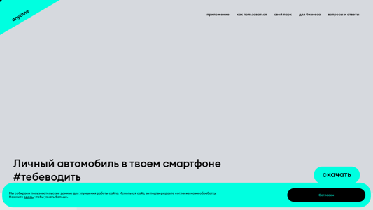 Название / ЗаголовокAnytime - 1й каршеринг в Беларуси. Аренда и прокат авто от 30 копейки в минуту!