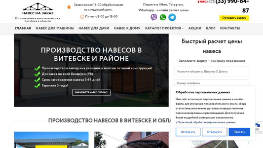 SEO-описание | Навес на заказ в Витебске ⭐ Цены под ключ от 240 BYN ⭐ Поликарбонат, металлочерепицы, гибкая черепицы ⭐ Гарантия ⭐ Монтаж ⭐ +375 33 990-84-87 |