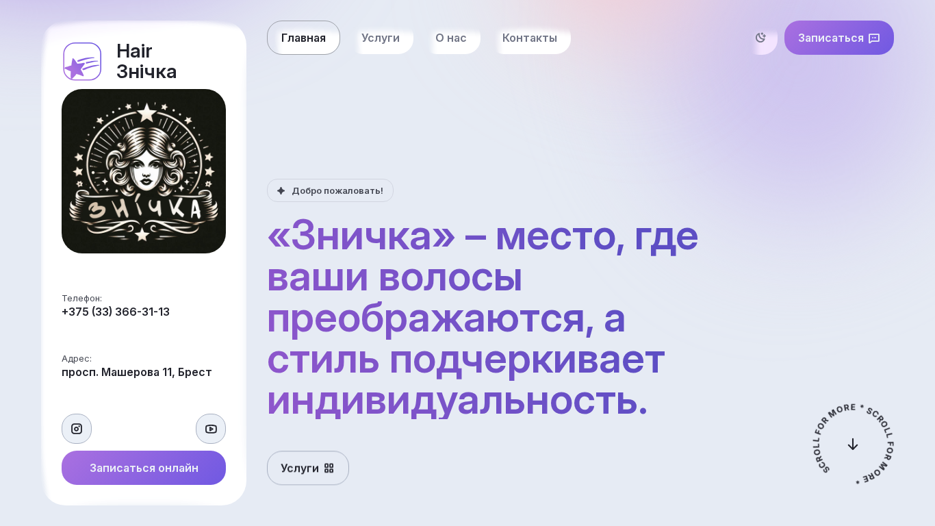 SEO-лексика | наши мастера зничке образ зничка ваш чтобы стиль индивидуальность парикмахерская услуги стрижка помогут создать вас контакты записаться 375 366-31-13 адрес |