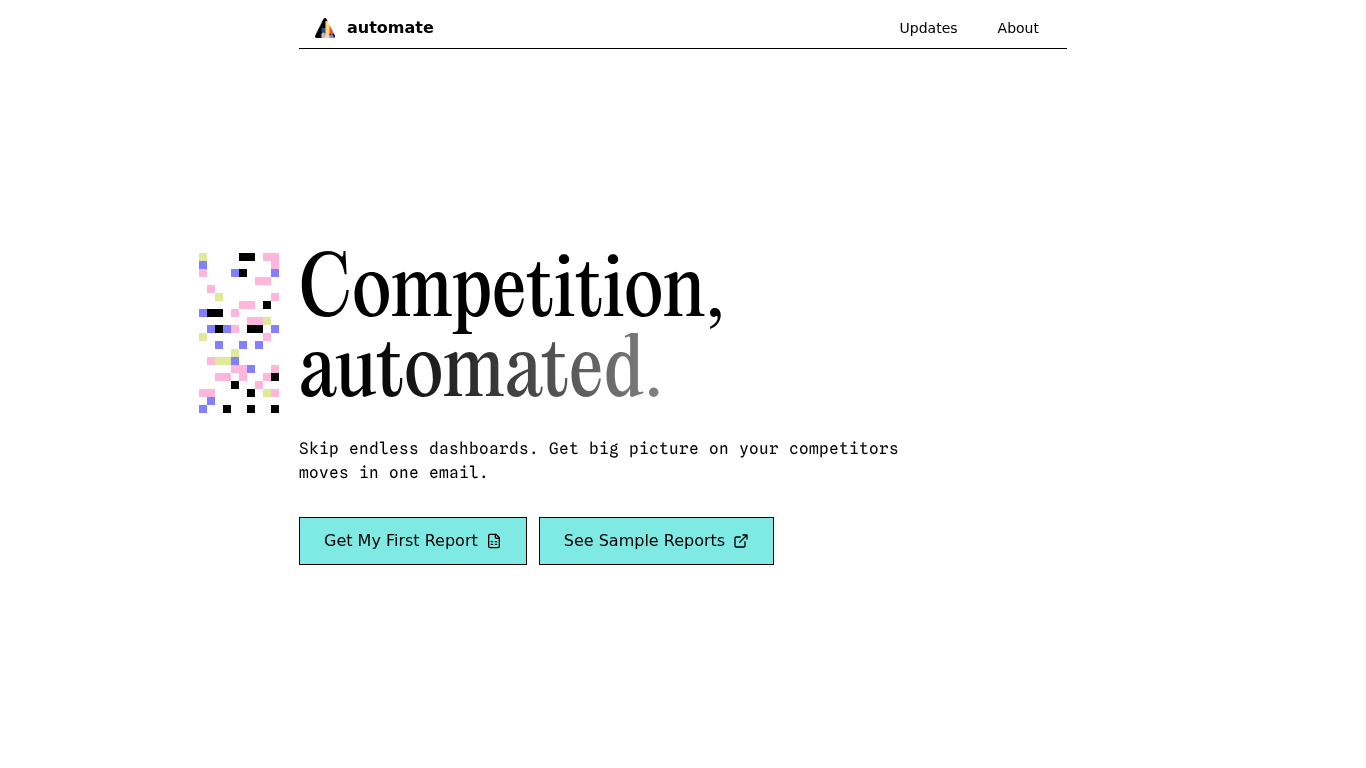 SEO-лексика | automated automate get competitor intelligence for you updates about competition skip endless dashboards big picture your competitors moves one email |