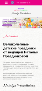 SEO-описание | Ведущая детских праздников Наталья Праздникова! Люблю превращать мечты и фантазии в настоящее торжество! С нами Ваш праздник станет ярче и будет вспоминаться как родителям, так и детям, храня теплые и веселые моменты. |