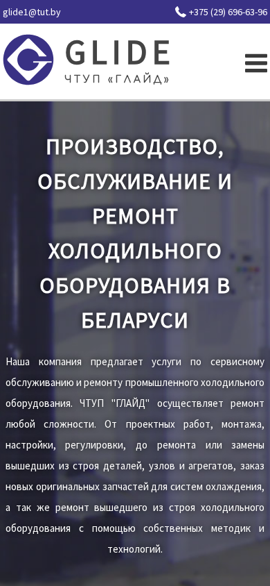 SEO-описание | ЧТУП «ГЛАЙД» - производство, обслуживание и ремонт холодильного оборудования в Республике Беларусь. Большой опыт работы, гарантия качества. |