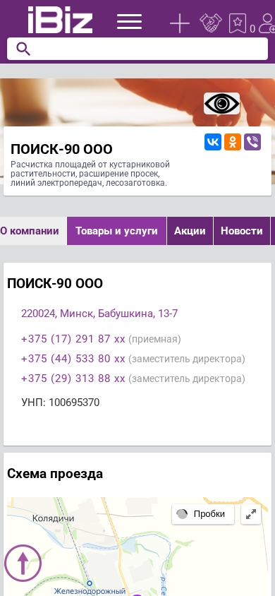 Название / Заголовок | ПОИСК-90 ООО - Расчистка площадей от кустарниковой растительности, расширение просек, линий электропередач, лесозаготовка.. 220024, Минск, , Бабушкина, 13-7 |