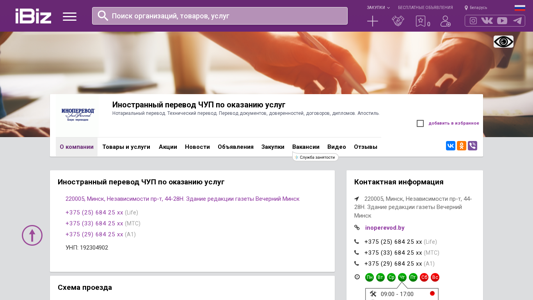 Название / Заголовок | Иностранный перевод ЧУП по оказанию услуг - Нотариальный перевод. Технический перевод. Перевод документов, доверенностей, договоров, дипломов. Апостиль.. 220005, Минск, , Независимости пр-т, 44-28Н. Здание редакции газеты Вечерний Минск |