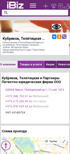Название / ЗаголовокКубряков, Телятицкая и Партнеры Патентно-юридическая фирма ООО - Патентование в Республике Беларусь и за рубежом. Регистрация товарных знаков. Авторское право. Представительство в судах. Подготовка договоров.. 220004, Минск, , Победителей пр-т, 17, каб. 1015