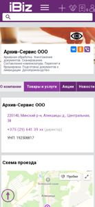 Название / Заголовок | Архив-Сервис ООО - Архивная обработка. Уничтожение документов. Сканирование. Составление номенклатуры. Переплет и брошюровка. Подготовка документов к ликвидации. Делопроизводство.. 220140, , Алекшицы д., Центральная, 38 |