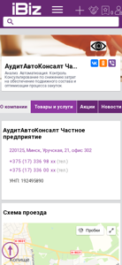 Название / Заголовок | АудитАвтоКонсалт Частное предприятие - Анализ. Автоматизация. Контроль. Консультирование по снижению затрат на обеспечение подвижного состава и оптимизации процесса закупок.. 220125, Минск, , Уручская, 21, офис 302 |